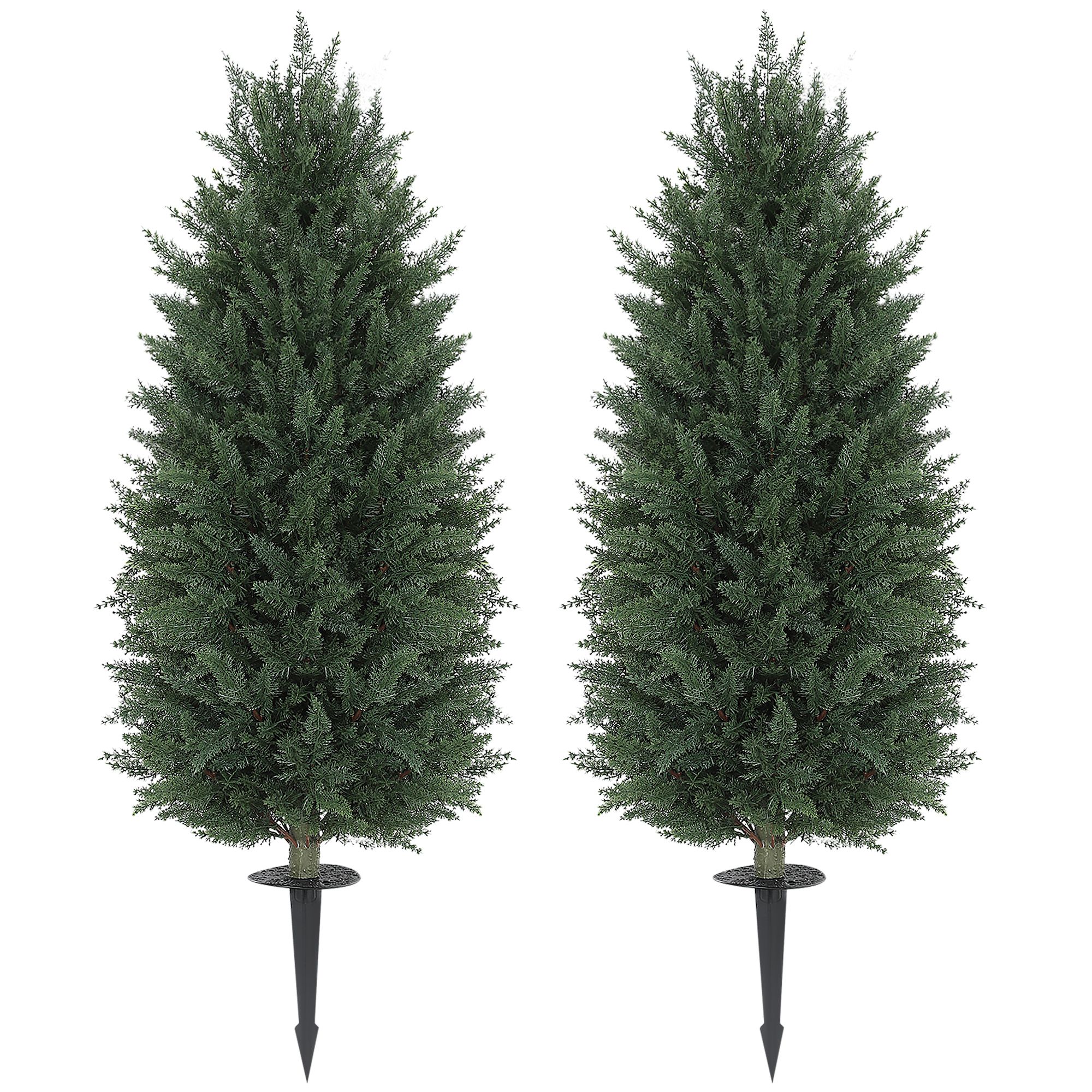 Give your space a bit of greenery with this HOMCOM artificial cypress tree set! Featuring two lush artificial trees with 1,047 leaves, each crafted from UV-resistant PE material, these faux trees provide low-upkeep year-round vibrancy for your home or backyard. Enjoy the charm of trees without the fuss of tending them with this floor plant set, suitable for pots or planting in soil to enhance garden paths. No watering or trimming is required for these no-hassle stylish trees for any setting.