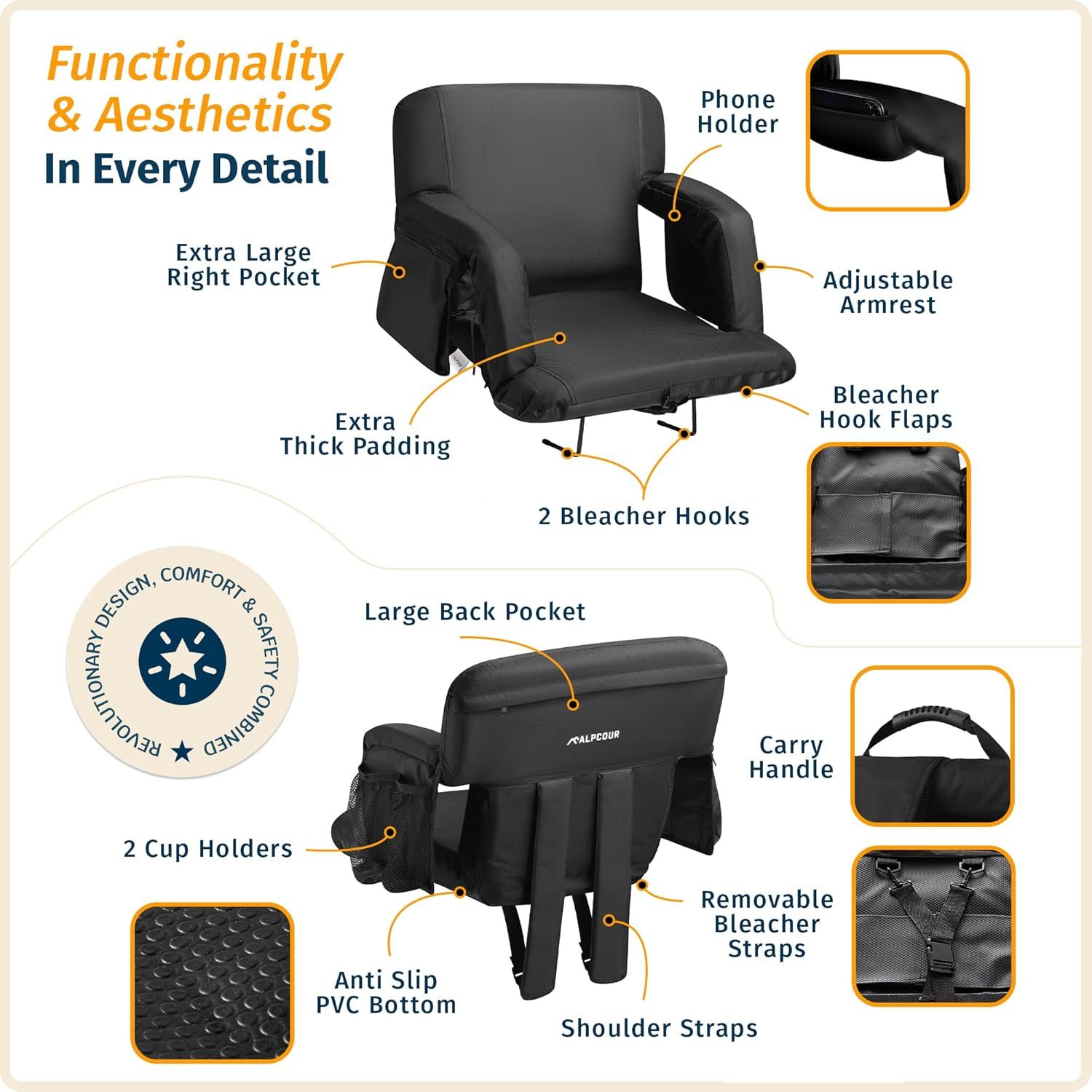 Alpcour Premium Reclining Stadium Seat for Bleachers with Back Support
